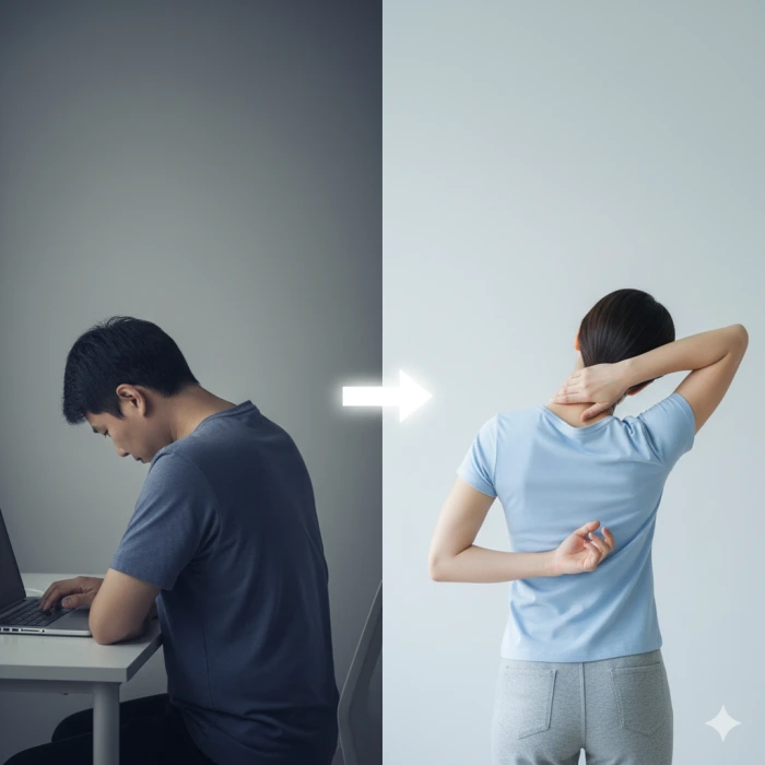 혹시 당신도 모르게 목을 앞으로 길게 빼고 스마트폰을 보거나, 구부정한 자세로 컴퓨터 모니터에 집중하고 있지는 않으신가요? 목과 어깨에 늘 돌덩이를 얹은 듯한 만성적인 통증, 원인 모를 두통과 잦은 피로감에 시달리고 있다면, 이는 현대인의 고질병이라 불리는 ‘거북목 증후군(Forward Head Posture)’의 명백한 신호입니다. 거북목 증후군은 단순히 보기 싫은 자세의 문제를 넘어, 경추(목뼈)의 정상적인 C자 곡선을 무너뜨려 목 디스크, 신경 압박, 척추 변형 등 심각한 근골격계 질환으로 이어질 수 있는 위험한 상태입니다. 이 문제는 더 이상 방치해서는 안 될 건강의 적신호입니다. 이 글은 더 이상 통증을 참으며 살아가지 않기로 결심한 당신을 위한 구체적이고 실질적인 해결책을 제시합니다. 잘못된 자세로 인해 짧아지고 경직된 근육을 정확히 찾아내 풀어주고, 약해진 심부 근육을 강화하여 무너진 목의 정렬을 바로 세우는, 전문가들이 가장 효과적이라고 입을 모으는 최고의 스트레칭 동작 다섯 가지를 상세한 설명과 함께 공개합니다. 이 동작들을 꾸준히 실천한다면, 당신은 지긋지긋한 통증의 고리에서 벗어나 가볍고 자유로운 목의 움직임을 되찾게 될 것입니다.